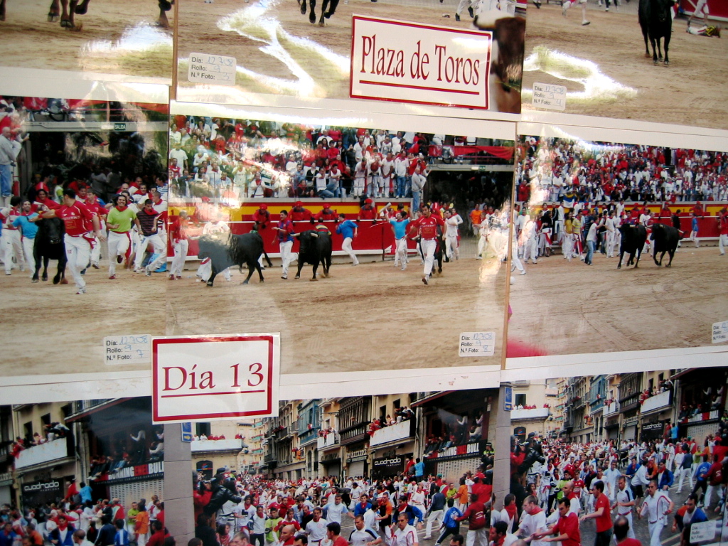 Entre concerts, marchés, et les fameuses corridas, les taureaux sont lâchés en pleine rue à 8 heures du matin, ils courent après les festivaliers qui se sont portés volontaires jusqu’à la plaza de toros. Des taureaux suivant un trajet à travers la vieille ville qui les conduit jusqu’aux arènes. Tous les jours du 7 au 14 juillet, a lieu cette brève et intense course riche en émotion.