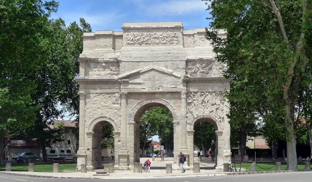 Pour finir, nous retournons à Orange avec l’arc de triomphe romain de la ville. Cet édifice a été bâti au Ier siècle ap. J.-C. pour célébrer l’entrée d’Arausio (aujourd’hui Orange) dans la Via Agrippa (réseau routier romain en Gaule romaine).